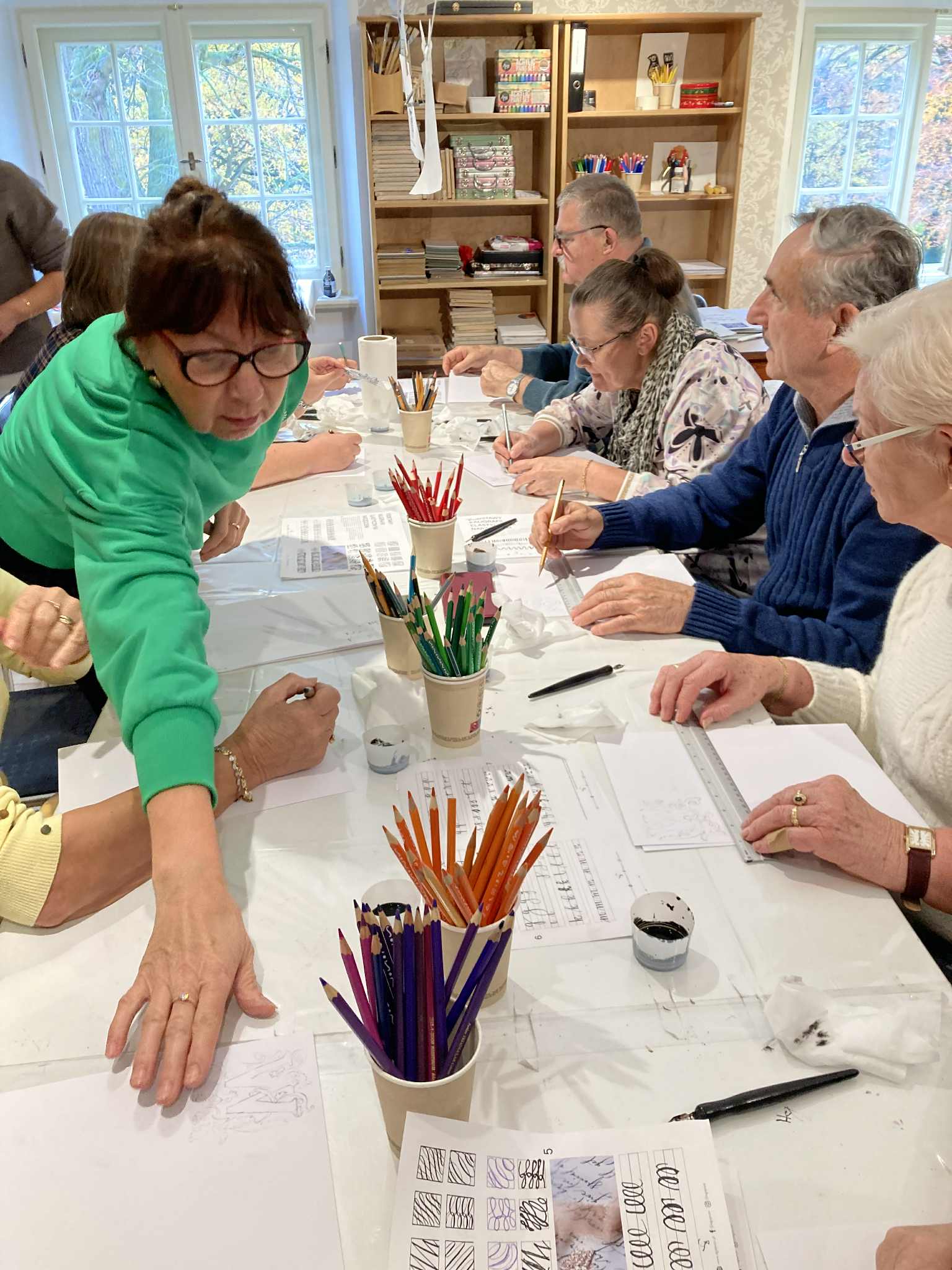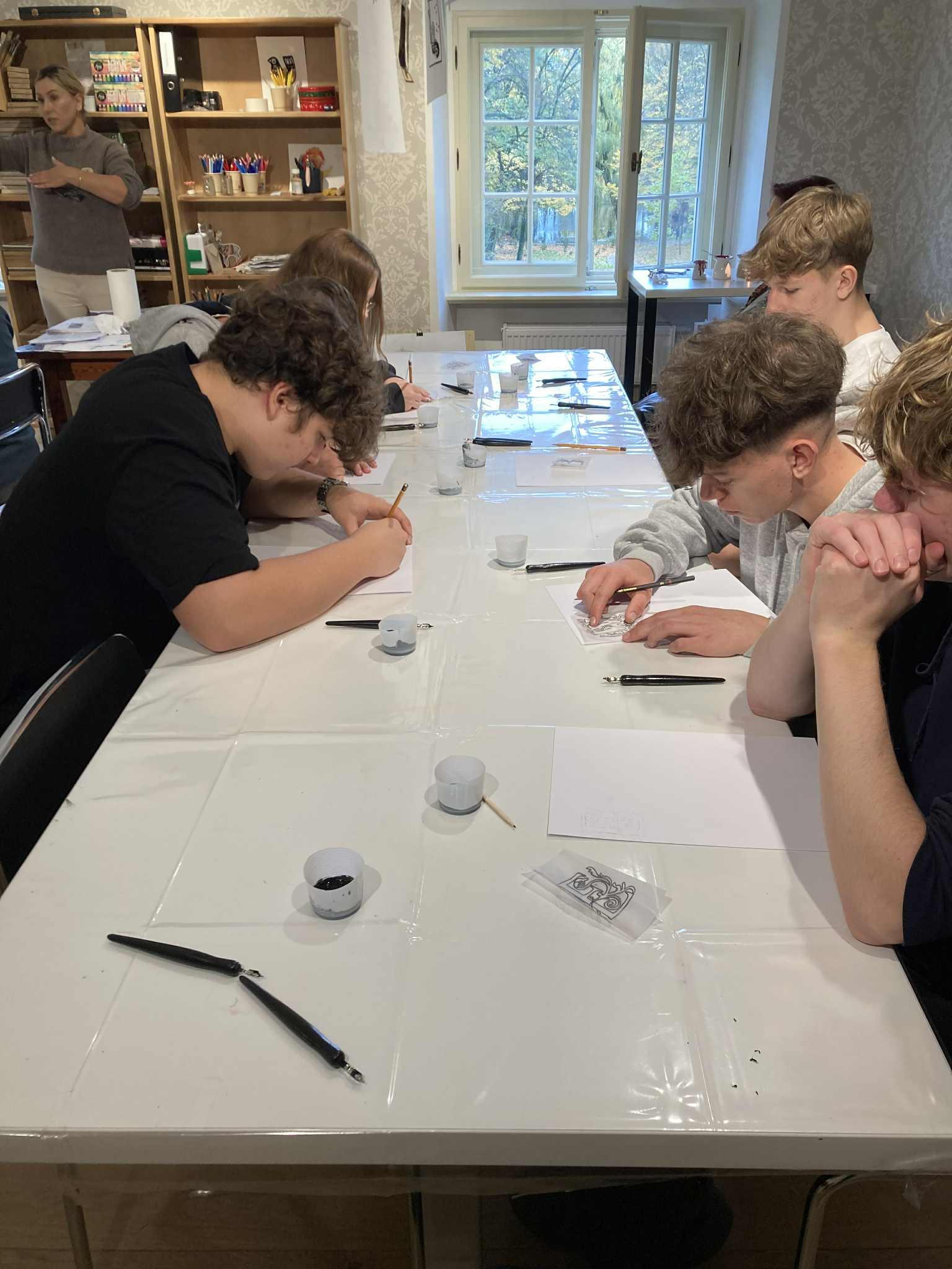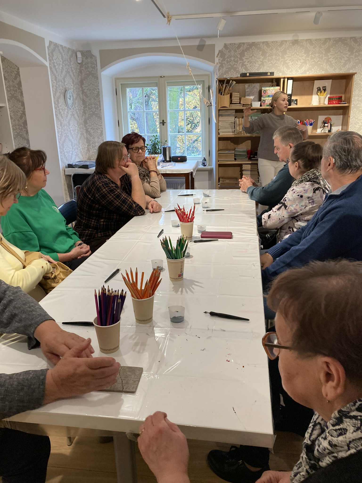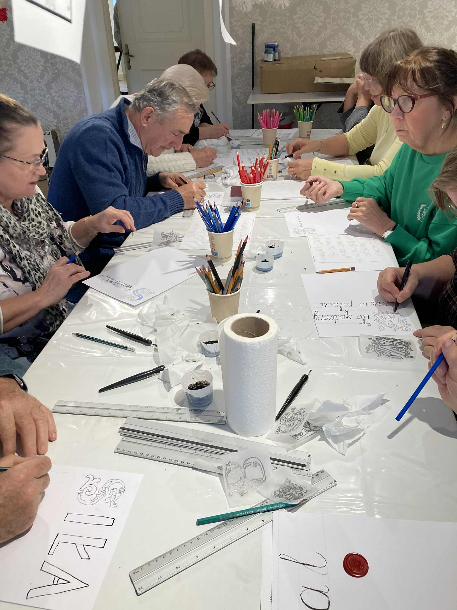 30 października 2025 r. studenci odolanowskiego UTW oraz młodzież liceum wybrała się do Zespołu Pałacowo-Parkowego w Lewkowie. Tym razem podczas 4-godzinnej wycieczki realizowali warsztaty z kaligrafii, miniatur i lakowania, podczas których uczestnicy trenowali piękną pisownie, malowanie miniatur a na końcu mogli opieczętować lakiem swoją pracę. Drugą częścią była lekcja muzealna w parku "O czym szumią lewkowskie lipy", gdzie rozpoznawano drzewa i uczono się jak je mierzyć. Trzecim elementem tego dnia było zwiedzanie pałacu z przewodnikiem, w trakcie którego snuły się opowieści o rodzinie Lipskich, ich życiu codziennym oraz zaangażowaniu w życie społeczne i polityczne naszego regionu. Jedna z uczennic mogła także zagrać na fortepianie. W trakcie zajęć i zwiedzania studenci UTW i licealiści robili zdjęcia historyczne i przyrodnicze, które wezmą udział w konkursie fotograficznym. To kolejny dzień spędzony na międzypokoleniowej integracji i zdobywaniu wiedzy o Małej Ojczyźnie.