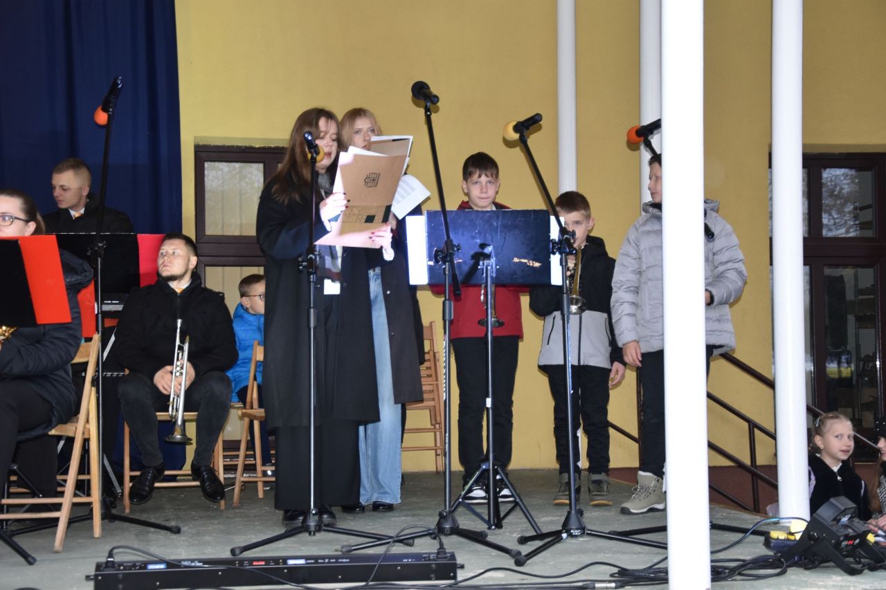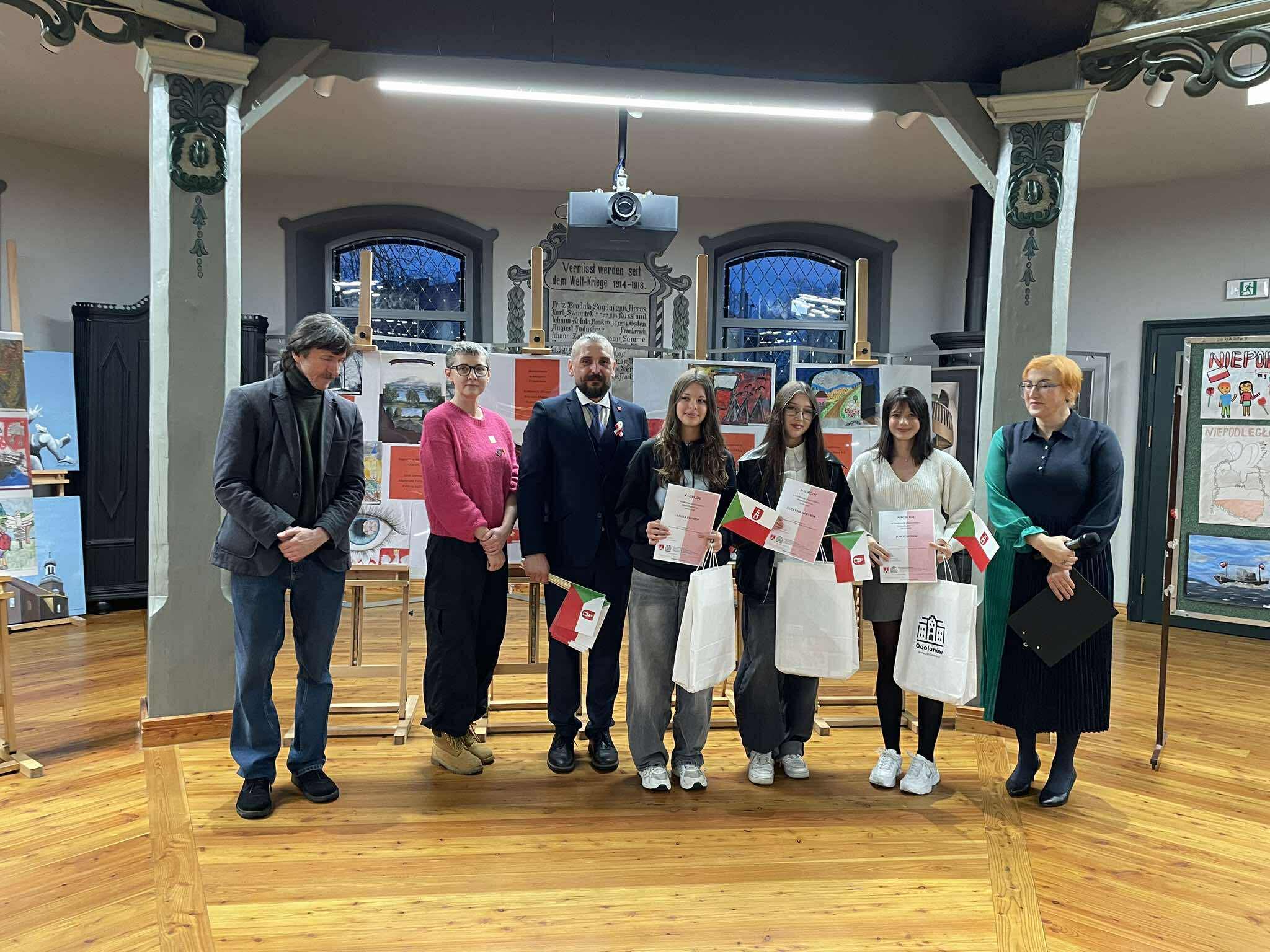 Następnie sztandar wziął udział w uroczystej mszy za ojczyznę. 4 uczennice zgłosiły się do konkursu niepodległościowego. Gratulujemy Jowicie Grek, Zuzannie Mederskiej, Marice Nakonecznej i Agacie Prokop, które wzięły udział w konkursie fotograficzno-plastycznym organizowanym przez Bibliotekę Publiczną w Odolanowie z okazji Święta Niepodległości i 11 listopada w czasie uroczystości w Galerii Forum odebrały nagrody z rąk pana burmistrza Marcina Szorskiego i pani dyrektor Biblioteki – Hanny Olejnik. Uczennicę do konkursu przygotowała pani Ewa Banaszkiewicz – Zawidzka. Otylia Garbacka i Nikola Hyla prowadziły także oficjalną część Jarmarku Świętomarcińskiego. Cieszy tak duże zaangażowanie licealistów w życie Małej Ojczyzny.