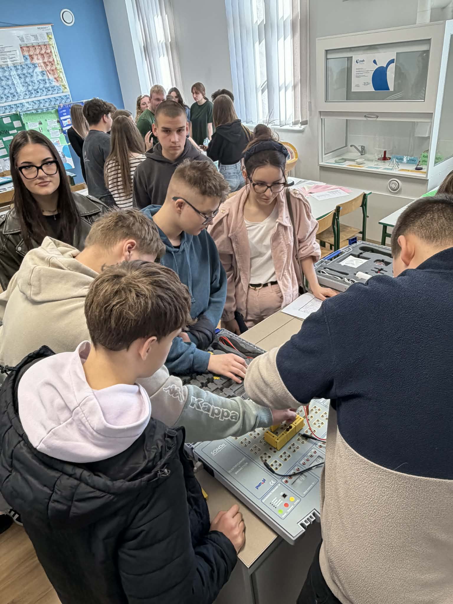 6 marca 2026 r. prawie 200 ósmoklasistów z okolicznych szkół odwiedziło nasza szkołę, by zapoznać się z jej ofertą edukacyjną, poznać swoich starszych kolegów i przyszłych nauczycieli oraz obejrzeć naszą bazę dydaktyczna.