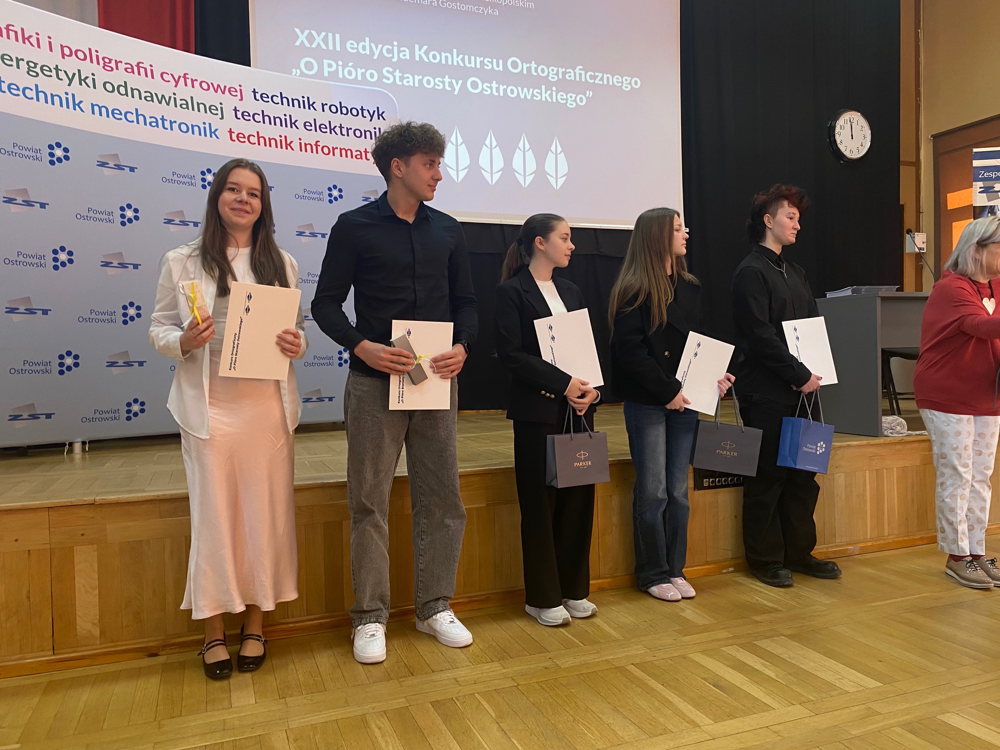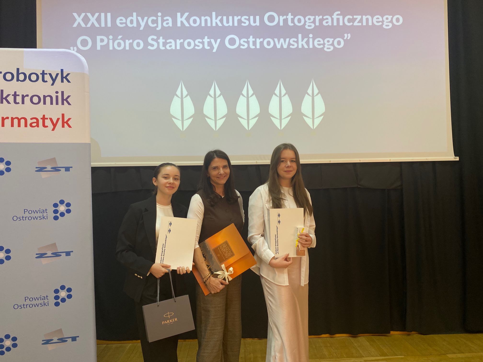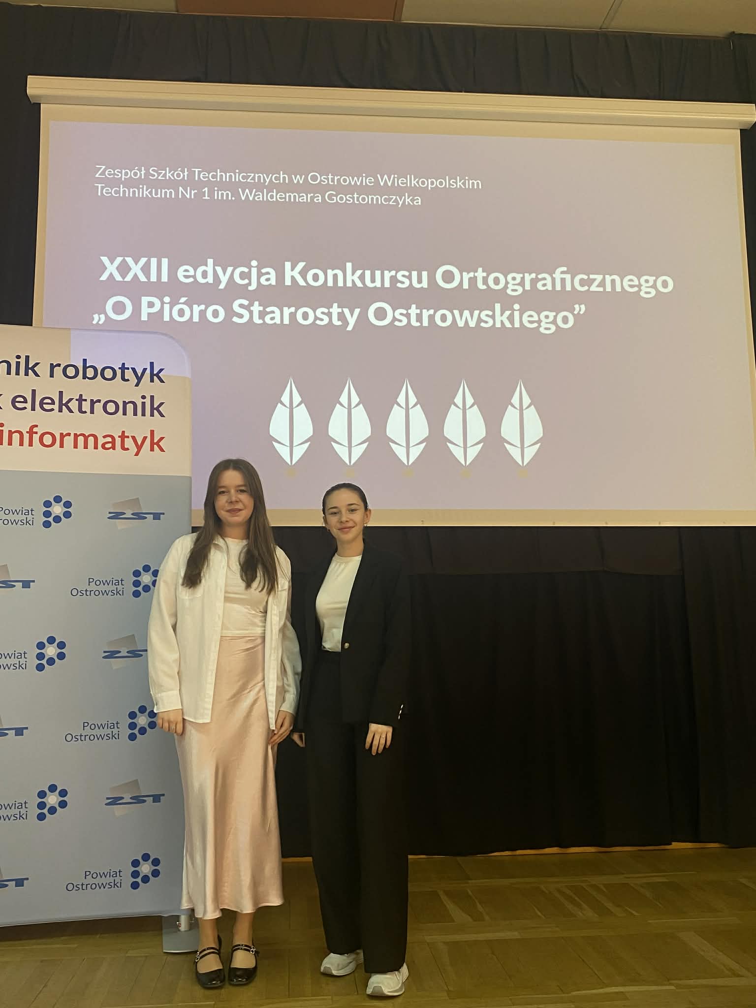 Julia Jasik zdobyła III miejsce, a Otylia Garbacka wyróżnienie w konkursie powiatowym. Była to XXII edycja Konkursu Ortograficznego „O Pióro Starosty Ostrowskiego” zorganizowana w Zespole Szkół Technicznych w Ostrowie Wielkopolskim. Do konkursu przystąpiło aż 11 szkół średnich. 22 uczestników musiało napisać trudny tekst pełen pułapek ortograficznych i specjalistycznego słownictwa technicznego. Julia i Otylia bardzo dobrze sobie z tym dyktandem poradziły. Nagrody odebrały z rąk starosty ostrowskiego – Pawła Rajskiego. Gratulujemy sukcesu. Uczennice do konkursu przygotowała pani Ewa Banaszkiewicz – Zawidzka.