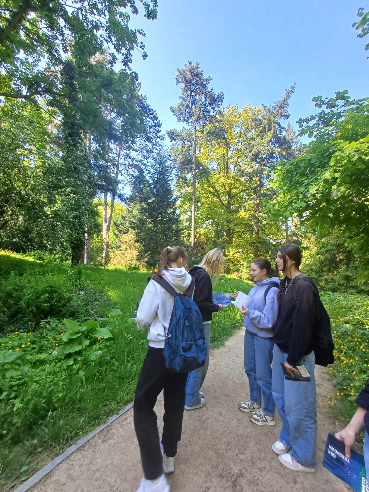 Celem wyjazdu były zajęcia terenowe prowadzone na terenie parku-arboretum, znanego z bogatej kolekcji drzew i krzewów z różnych stron świata. Spacerując po parku uczniowie uczyli się rozpoznawać gatunki roślin, poznawali ich cechy charakterystyczne, a także obliczali wysokości drzew. Nie zabrakło również elementu rywalizacji – w ramach gry terenowej „Nietoperzymy”. Licealiści przemierzali wyznaczoną trasę, docierając do kolejnych punktów według mapy. Zadania wymagały nie tylko spostrzegawczości, ale też współpracy i dobrej orientacji w terenie. Kolejnym punktem wycieczki była wizyta w Muzeum Leśnictwa, w którym urządzono wystawę z zakresu przyrodniczych podstaw leśnictwa zatytułowaną „Spotkanie z lasem”. Dodatkowo na ekspozycji gatunków leśnych z „Polskiej Czerwonej Księgi” uczniowie mieli okazje zobaczyć gatunki roślin, zwierząt i grzybów zagrożone wyginięciem w środowisku przyrodniczym Polski. Wycieczka do Gołuchowa była doskonałym połączeniem nauki i aktywnego wypoczynku, a przy tym okazją do integracji klasy i bezpośredniego kontaktu z przyrodą. Wycieczkę zorganizowały p. A. Kuś i p. A. Cieślińska nauczycielki geografii i biologii.